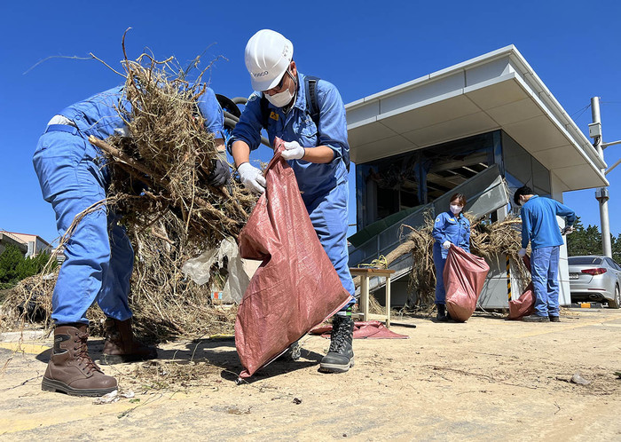 7일 포항제철소 및 협력사 임직원들이 태풍으로 유입된 토사를 정리하고 파손된 시설물을 복구했다. 태풍피해 복구에는 포스코 본사 및 포항제철소, 협력사 직원 약 1만 5천여명이 투입됐다. 광양제철소 일부 인력도 피해 복구에 참여했다.