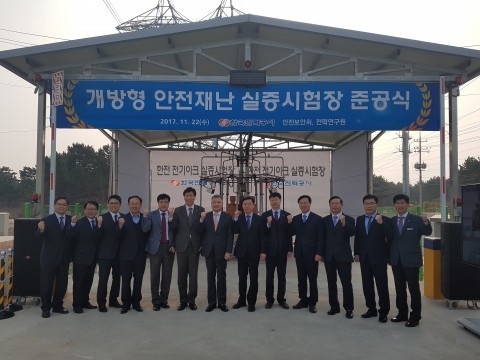 한국전력공사(사장 조환익)가 11월 22일 국내 최초로 안전장구 및 개인보호구에 대한 안전성능을 실증할 수 있는 ‘개방형 안전·재난 실증시험장’을 전력연구원 전력시험센터(전북 고창군 소재)에 구축하였다.